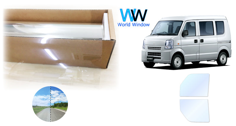 オーロラフィルム (アイスブルー91) 遮熱フィルム 透過率90.5% スズキ エブリイバン (DA64V) カット済みカーフィルム フロントドアセット オーロラタイプ ゴーストタイプ ホログラフィック