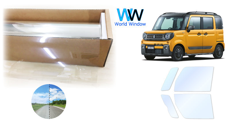 オーロラフィルム (アイスブルー91) 遮熱フィルム 透過率90.5% スズキ スペーシアギア MK53S カット済みカーフィルム フロントドアセット オーロラタイプ ゴーストタイプ ホログラフィック