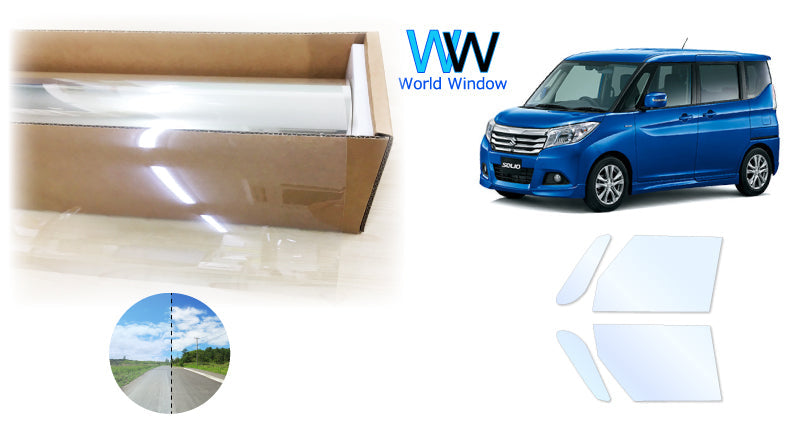 オーロラフィルム (アイスブルー91) 遮熱フィルム 透過率90.5% スズキ ソリオ (MA26S/MA36S) カット済みカーフィルム フロントドアセット オーロラタイプ ゴーストタイプ ホログラフィック