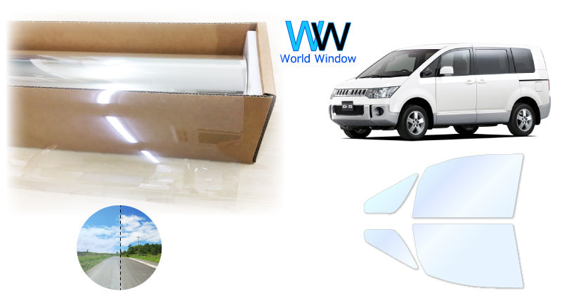 オーロラフィルム (アイスブルー91) 遮熱フィルム 透過率90.5% ミツビシ デリカD:5 (CV1W/CV2W/CV5W/CV4W) カット済みカーフィルム フロントドアセット オーロラタイプ ゴーストタイプ ホログラフィック