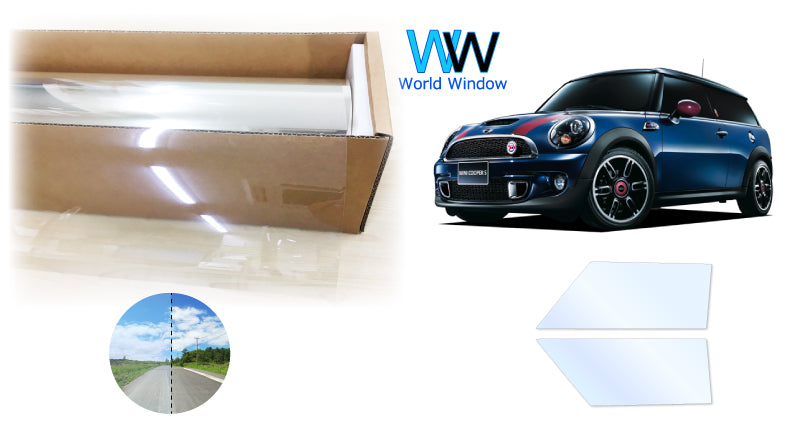 オーロラフィルム (アイスブルー91) 遮熱フィルム 透過率90.5% MINI (ミニ) クラブマン R55 (R55 ML16/MM16/MMJCW/ZG16/ZF16/MHJCW) カット済みカーフィルム フロントドアセット オーロラタイプ ゴーストタイプ ホログラフィック