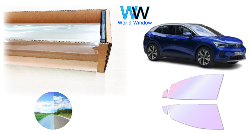 オーロラフィルム (グロウゴースト91) 遮熱フィルム 透過率90% フォルクス・ワーゲン ID.4 (E2EBJ) カット済みカーフィルム フロントドアセット オーロラタイプ ゴーストタイプ ホログラフィック カメレオンフィルム