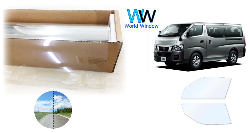 オーロラフィルム (ゴースト2ネオ89) 遮熱フィルム 透過率88.5% ニッサン NV350 キャラバン (CW4E26/CS4E26/CW8E26/KS4E26/VW6E26/VR2E26/KS2E26CW4E26/DS4E26/DW4E26/DS8E26) カット済みカーフィルム フロントドアセット オーロラタイプ ゴーストタイプ ホログラフィック