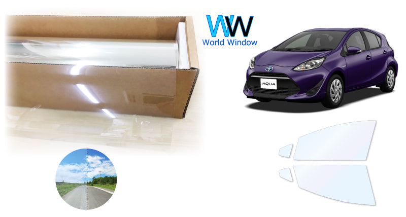 オーロラフィルム (ファインゴースト90) 遮熱フィルム 透過率90% トヨタ アクア(AQUA) NHP10 カット済みカーフィルム フロントドアセット オーロラタイプ ゴーストタイプ ホログラフィック