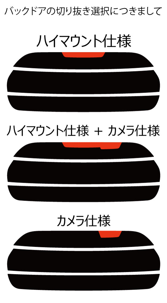 ・ リヤ : 3 枚貼り (ハイマウント及びカメラ切り抜き有無)