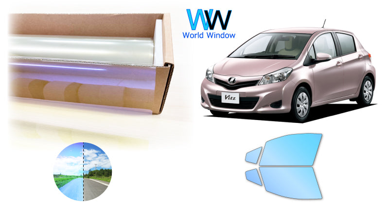 遮熱機能付 オーロラフィルム(ゴーストタイプ) 透過率81% トヨタ ヴィッツ (Vitz) 前期 (KSP130/NCP131/NSP130/NSP135) カット済みカーフィルム フロントドアセット オーロラタイプ ゴーストタイプ(発色仕様) 断熱フィルム