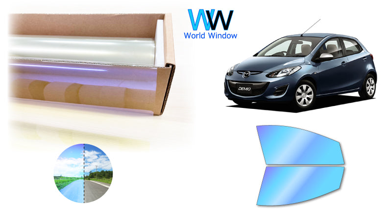 遮熱機能付 オーロラフィルム(ゴーストタイプ) 透過率81% マツダ デミオ (DE5FS/DE3FS/DE3AS/DEJFS) カット済みカーフィルム フロントドアセット オーロラタイプ ゴーストタイプ(発色仕様) 断熱フィルム
